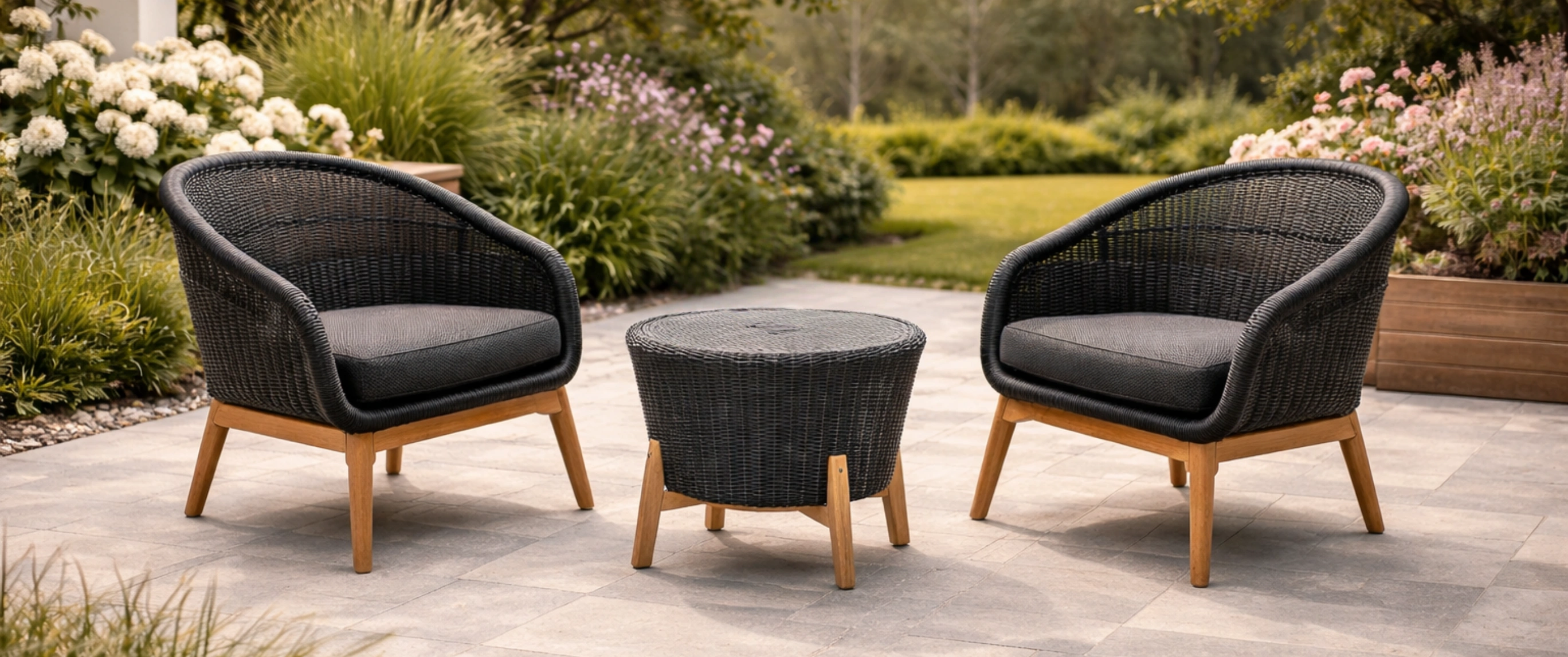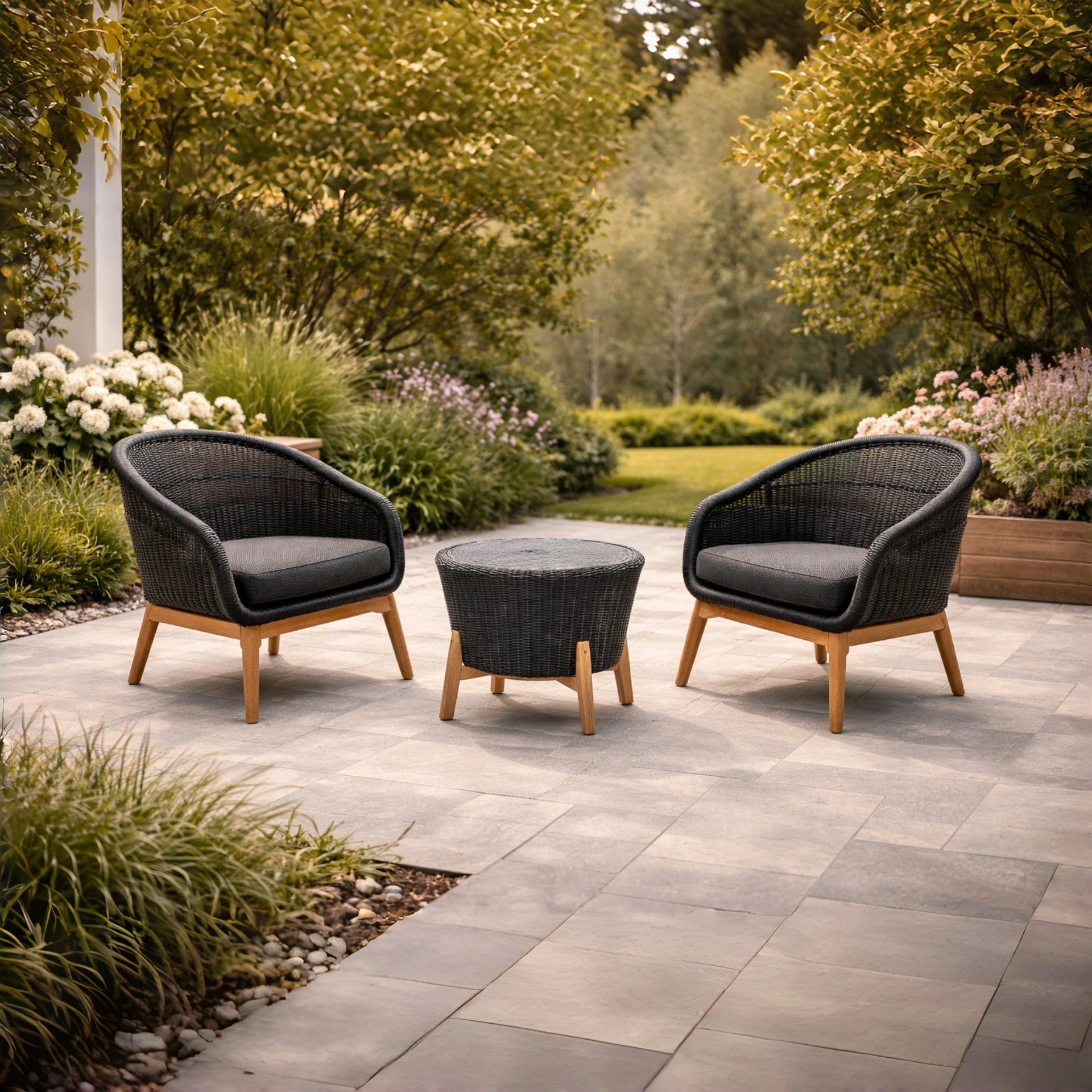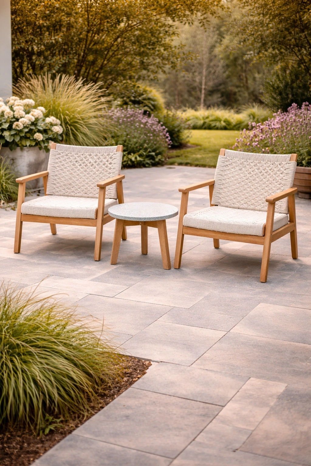 Ensemble de table et chaises adapté aux espaces de jardin et de terrasse, doté d’une structure stable, facilitant l’utilisation quotidienne et la mise en place.