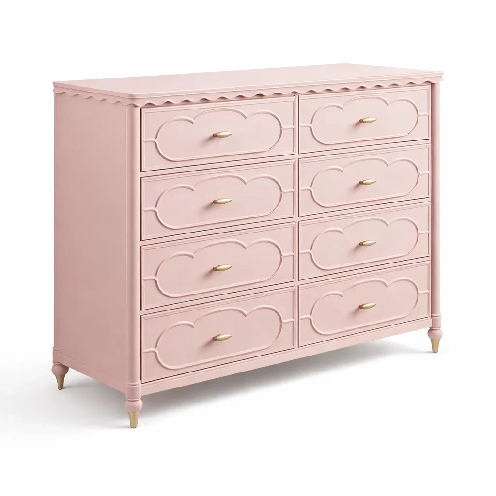 Commode en bois MDF rose avec 8 tiroirs