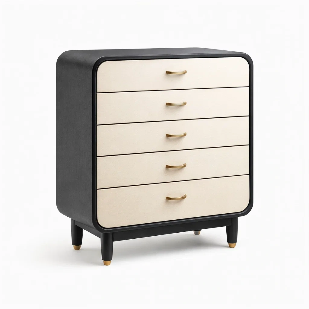 Commode en MDF noir et beige avec 5 tiroirs 80 x 40 x 90 cm