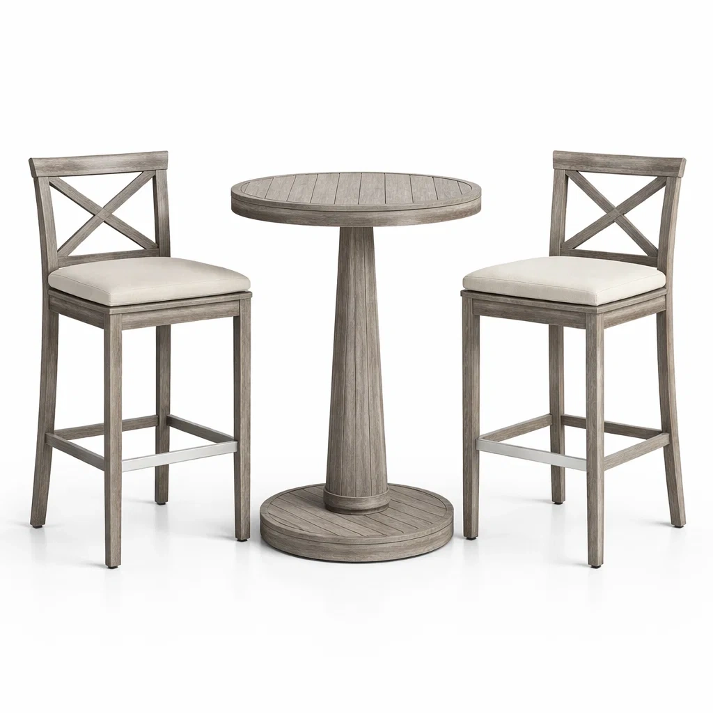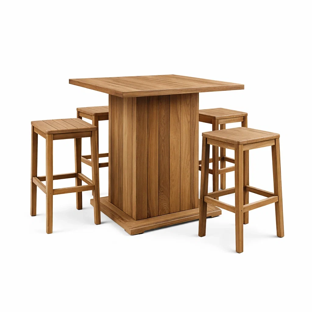 Ensemble de bar en teck avec table haute et tabourets